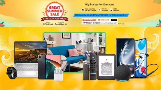 Amazon Great Summer Sale 2024 Best Deals and Offers: अमेजन ने ग्रेट समर सेल की तारीख का ऐलान कर दिया है। भारत में ये सेल इस बार 2 मई से शुरू होने जा रही है। जहां कई प्रोडक्ट्स पर बंपर छूट मिलने वाली है। पिछली अमेजन सेल की तरह, प्राइम मेंबर्स इस सेल का मजा पहले ले पाएंगे। सेल के दौरान मोबाइल फोन, एक्सेसरीज, ब्यूटी और फैशन आइटम, लैपटॉप, टैबलेट, स्मार्टवॉच, ईयरबड और स्मार्ट टीवी जैसे प्रोडक्ट्स सस्ते में मिलेंगे।