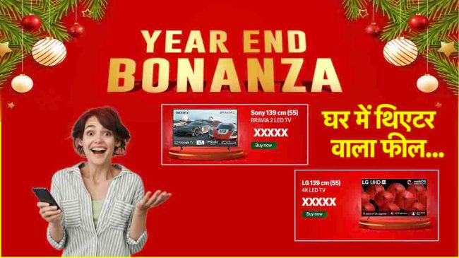 Amazon Year End Bonanza Sale 55-Inch Smart TV Discount offers: рдЕрдЧрд░ рдЖрдк рднреА рдХрд╛рдлреА рд╡рдХреНрдд рд╕реЗ рдПрдХ рдмреЬреА рд╕реНрдХреНрд░реАрди рд╡рд╛рд▓рд╛ рдЯреАрд╡реА рдЦрд░реАрджрдиреЗ рдХреА рд╕реЛрдЪ рд░рд╣реЗ рд╣реИрдВ рддреЛ рдЕрдореЗрдЬрди рдХреА Year End Bonanza рд╕реЗрд▓ рдЖрдкрдХреЗ рд▓рд┐рдП рд╕рдмрд╕реЗ рдЦрд╛рд╕ рдСрдлрд░ рд▓реЗрдХрд░ рдЖрдИ рд╣реИред рдЬреА рд╣рд╛рдВ, рдИ-рдХреЙрдорд░реНрд╕ рдкреНрд▓реЗрдЯрдлреЙрд░реНрдо рдЗрд╕ рд╕реЗрд▓ рдореЗрдВ 55 рдЗрдВрдЪ рдХреЗ рд╕реНрдорд╛рд░реНрдЯ рдЯреАрд╡реА рдкрд░ рд╕реАрдзреЗ 46 рд╣рдЬрд╛рд░ рд░реБрдкрдпреЗ рддрдХ рдХреА рдЫреВрдЯ рджреЗ рд░рд╣рд╛ рд╣реИ, рдЬреЛ рд╕рд╕реНрддреЗ рдореЗрдВ рдЯреАрд╡реА рдЦрд░реАрджрдиреЗ рдХрд╛ рдЬрдмрд░рджрд╕реНрдд рдореМрдХрд╛ рд╣реИред рдпрд╣реА рдирд╣реАрдВ рдЗрди рд╕рднреА 4K Ultra HD Smart TV рдкрд░ рдмреИрдВрдХ рдбрд┐рд╕реНрдХрд╛рдЙрдВрдЯ рднреА рдорд┐рд▓ рд░рд╣рд╛ рд╣реИ, рдЬрд┐рд╕рд╕реЗ рдЗрди рдЯреАрд╡реА рдХрд╛ рдкреНрд░рд╛рдЗрд╕ рдХрд╛рдлреА рдЬреНрдпрд╛рджрд╛ рдХрдо рд╣реЛ рдЬрд╛рддрд╛ рд╣реИред рдЦрд╛рд╕ рдмрд╛рдд рдпрд╣ рд╣реИ рдХрд┐ рдЗрд╕ рд▓рд┐рд╕реНрдЯ рдореЗрдВ Sony рдФрд░ LG рдЬреИрд╕реЗ рдмреНрд░рд╛рдВрдб рдХреЗ рдЯреАрд╡реА рднреА рд╢рд╛рдорд┐рд▓ рд╣реИрдВ рдЬреЛ рд╕реЗрд▓ рдХреЗ рджреМрд░рд╛рди рд╕рд╕реНрддреЗ рдореЗрдВ рдорд┐рд▓ рд░рд╣реЗ рд╣реИрдВред рдЪрд▓рд┐рдП рдЗрди рдбреАрд▓реНрд╕ рдкрд░ рдПрдХ рдирдЬрд░ рдбрд╛рд▓рддреЗ рд╣реИрдВ…