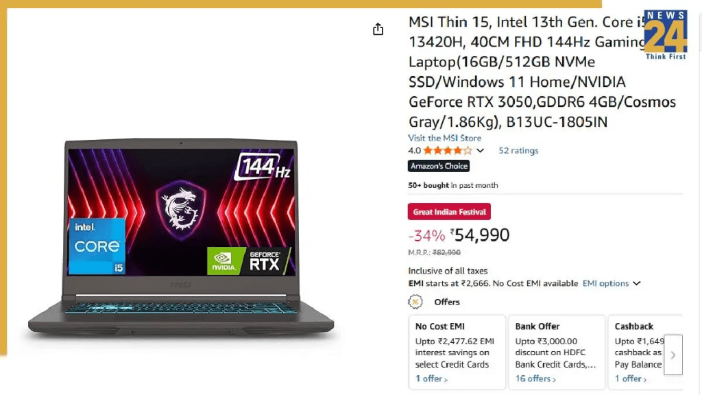 рдЕрдЧрд░ рдЖрдк рдЧреЗрдорд┐рдВрдЧ рдХреЗ рд▓рд┐рдП рднреА рд▓реИрдкрдЯреЙрдк рдЪрд╛рд╣рддреЗ рд╣реИрдВ, рддреЛ MSI Thin 15 рдПрдХ рд╢рд╛рдирджрд╛рд░ рд╡рд┐рдХрд▓реНрдк рд╣реИ. рдЗрд╕рдореЗрдВ 13th Gen Intel Core i5-13420H рдкреНрд░реЛрд╕реЗрд╕рд░ рдФрд░ NVIDIA GeForce RTX 3050 4GB рдЧреНрд░рд╛рдлрд┐рдХреНрд╕ рдХрд╛рд░реНрдб рд╣реИ. 16GB DDR4 RAM рдФрд░ 512GB NVMe SSD рд╕реНрдЯреЛрд░реЗрдЬ рдХреЗ рд╕рд╛рде рдпрд╣ рд▓реИрдкрдЯреЙрдк рд░реЛрдЬрдорд░реНрд░рд╛ рдХреЗ рдХрд╛рдо рдФрд░ рд╣рд▓реНрдХрд╛ рдЧреЗрдорд┐рдВрдЧ рджреЛрдиреЛрдВ рдХреЗ рд▓рд┐рдП рд╕рдХреНрд╖рдо рд╣реИ. 15.6 рдЗрдВрдЪ FHD рдбрд┐рд╕реНрдкреНрд▓реЗ рдФрд░ 144Hz рд░рд┐рдлреНрд░реЗрд╢ рд░реЗрдЯ рдЗрд╕реЗ рдЧреЗрдорд┐рдВрдЧ рдХреЗ рд▓рд┐рдП рднреА рдЙрдкрдпреБрдХреНрдд рдмрдирд╛рддреЗ рд╣реИрдВ. рдЗрд╕рдХреА рдХреАрдордд Amazon рдкрд░ 54,990 рд╣реИ.