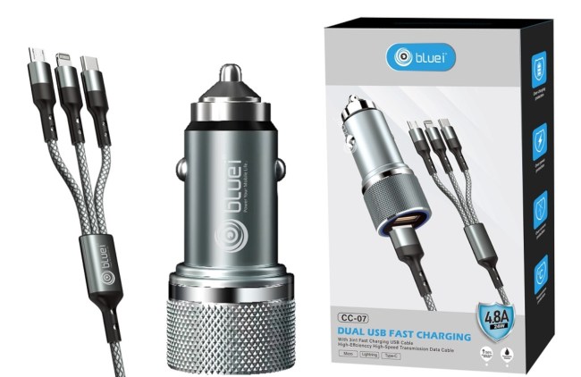 Bluei CC-07 कार चार्जर 24W सपोर्ट के साथ है। ये 4.8A रैपिड व्हीकल चार्जर एडॉप्टर आदर्श ऑप्शन है। थ्री-इन-वन मेटल डेटा केबल, दो यूएसबी पोर्ट और ये व्हीकल चार्जर एक साथ कई डिवाइसों को बेहद तेज दरों पर चार्ज कर सकता है। इसके जरिए एंड्रॉइड, आईफोन और टाइप-सी डिवाइसों को चार्ज किया जा सकता है।