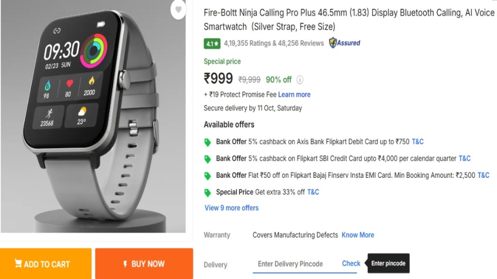 - Fire-Boltt Ninja Smartwatch- 999 (MRP 9,999)