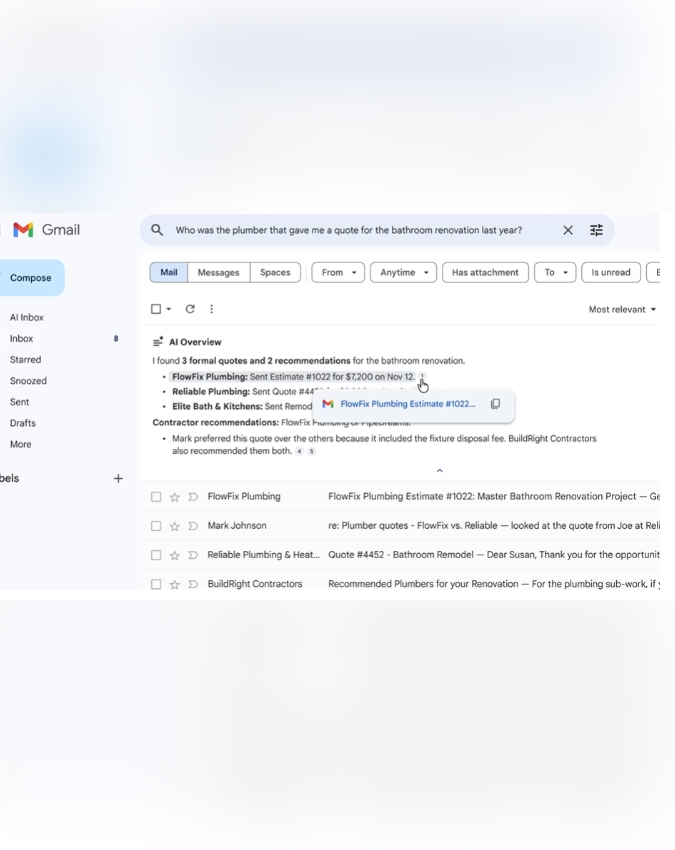 अब तक पुराने ईमेल ढूंढने के लिए यूजर्स को मैन्युअली सर्च करना पड़ता था, जिसमें काफी समय लगता था. नए AI ओवरव्यू फीचर के साथ यह काम बेहद आसान हो जाएगा. यूजर सीधे इनबॉक्स में सवाल पूछ सकेंगे, जैसे किसी पुराने मेल में क्या जानकारी थी या किसी खास व्यक्ति ने कब ईमेल भेजा था. AI मिनटों में उस मेल से जुड़ी सभी जरूरी बातें सामने रख देगा.