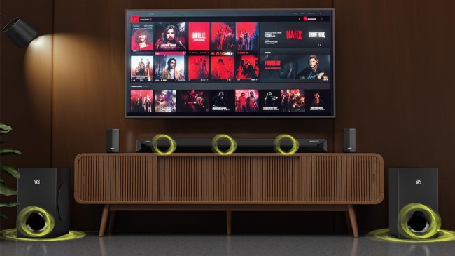 Govo GoSurround 999W Soundbar का डिजाइन बेहद प्रीमियम है। इसकी हाई क्वालिटी को आप आसानी से महसूस कर सकते हैं। इसका डिजाइन इम्प्रेस करता है और आपके रूम या हॉल को क्लास लुक देने में मदद करता है। कनेक्टिविटी के लिए इसमें आपको ब्लूटूथ v5.3, HDMI, AUX, USB और OPT Ports दिए जाते हैं। यानी आप इसे अलग-अलग पोर्ट्स की मदद से कनेक्ट कर सकते हैं। इसके साथ मिलने वाले रिमोट को आप आसानी से यूज़ कर सकते हैं। Wall Mountable की वजह से आप इसे आसानी से कनेक्ट भी कर सकते हैं।