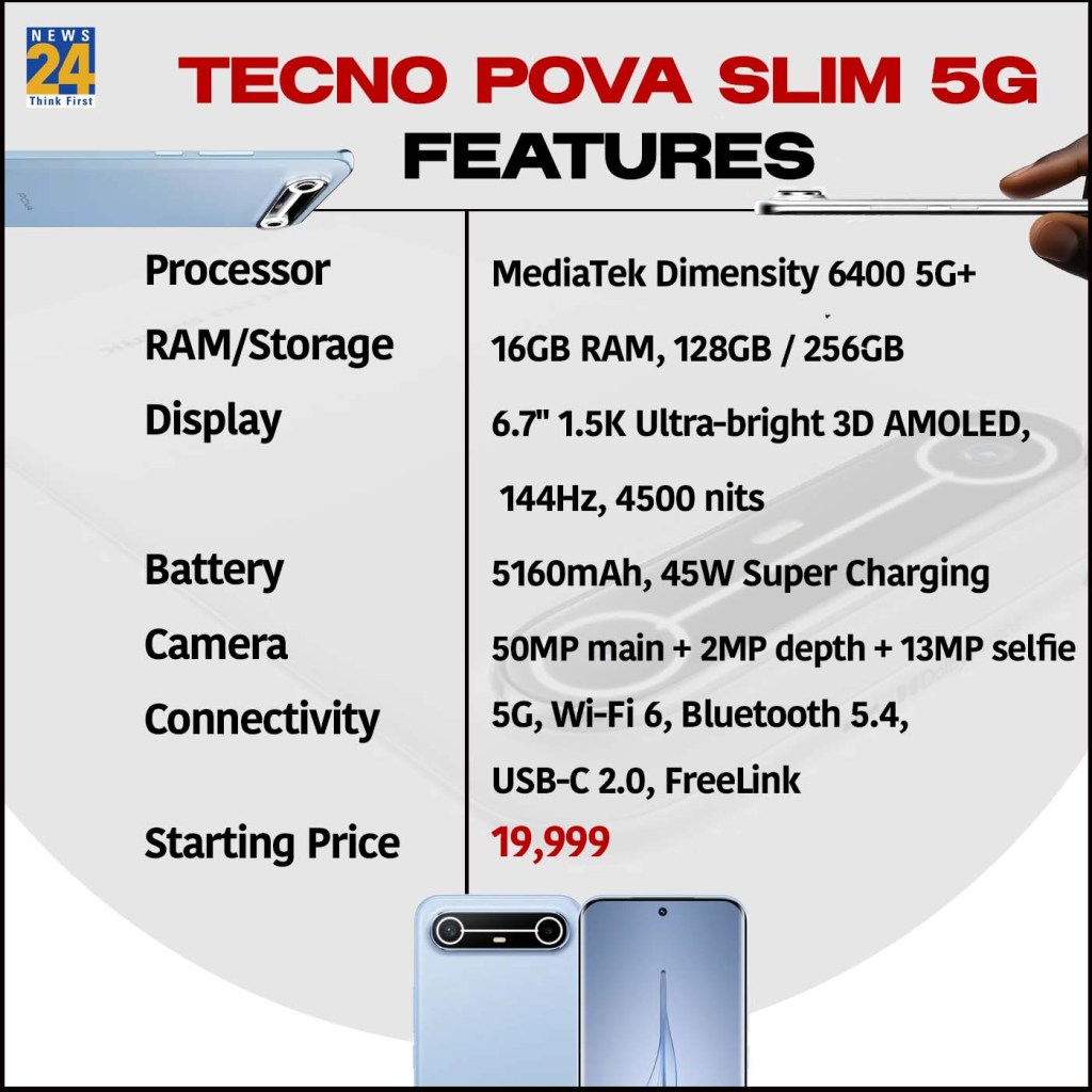 यहां सबसे बड़ा फर्क नज़र आता है. iPhone Air की शुरुआती कीमत 1,19,900 रुपये है. वहीं, Tecno Pova Slim 5G सिर्फ 19,999 रुपये में उपलब्ध है. Tecno उन लोगों के लिए अच्छा है जो बजट में स्लिम फोन चाहते हैं, जबकि iPhone Air प्रीमियम फीचर्स और लॉन्ग-टर्म वैल्यू देता है.