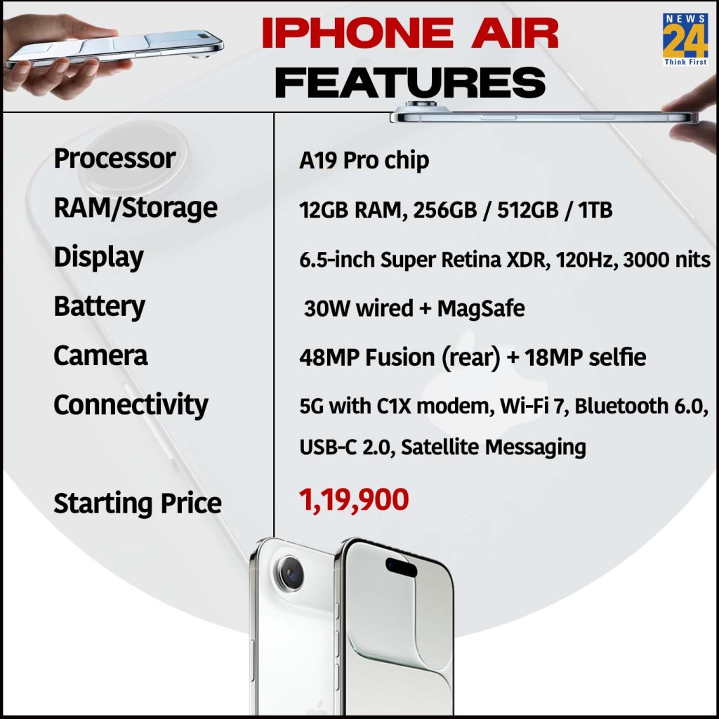 परफॉर्मेंस की बात करें तो iPhone Air किसी और लेवल पर है. इसमें A19 Pro चिप दी गई है, जो हार्डवेयर-लेवल रे ट्रेसिंग, 16-कोर न्यूरल इंजन और बेहतर बैटरी एफिशिएंसी के साथ आती है. इसका मतलब यह है कि यह फोन आने वाले कई सालों तक पावरफुल बना रहेगा.