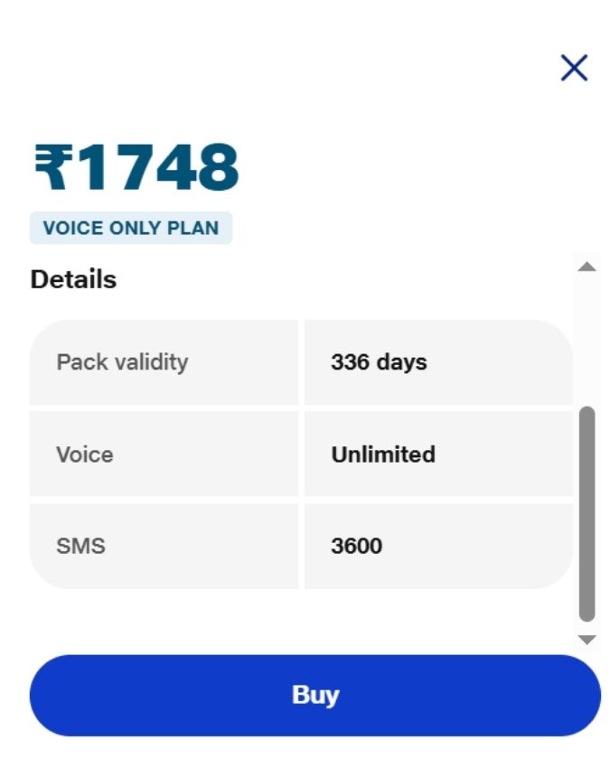 рдЗрд╕ рдкреНрд▓рд╛рди рдХреА рд╕рдмрд╕реЗ рдмрдбрд╝реА рдЦрд╛рд╕рд┐рдпрдд рдЗрд╕рдХреА 336 рджрд┐рди рдХреА рд╡реИрд▓рд┐рдбрд┐рдЯреА рд╣реИ, рдпрд╛рдиреА рдХрд░реАрдм 11 рдорд╣реАрдиреЗ рддрдХ рдЖрдкрдХреЛ рджреЛрдмрд╛рд░рд╛ рд░рд┐рдЪрд╛рд░реНрдЬ рдХрд░рд╛рдиреЗ рдХреА рдЬрд░реВрд░рдд рдирд╣реАрдВ рдкрдбрд╝реЗрдЧреА. рдЕрдЧрд░ рд░реЛрдЬ рдХреЗ рд╣рд┐рд╕рд╛рдм рд╕реЗ рдЦрд░реНрдЪ рджреЗрдЦреЗрдВ рддреЛ рдпрд╣ рдХрд░реАрдм 2.66 рд░реБрдкрдпреЗ рдкреНрд░рддрд┐рджрд┐рди рдмреИрдарддрд╛ рд╣реИ, рдЬреЛ рдЗрд╕реЗ рдмреЗрд╣рдж рдХрд┐рдлрд╛рдпрддреА рдмрдирд╛рддрд╛ рд╣реИ.