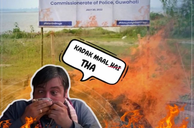 ‘गांजा हेरोइन सभी आग की लपटों में चले गए! आस-पास के सभी कचरा सेठों के लिए, आपके लिए कुछ खबरें हैं, हम राज्य भर में मादक पदार्थों की तस्करी के खिलाफ अपना अभियान जारी रखेंगे।’ पुलिस ने हैशटैग ‘ड्रग्स पर युद्ध’ और ‘नशीले पदार्थों के खिलाफ असम’ का उपयोग करते हुए यह चेतावनी जारी की।