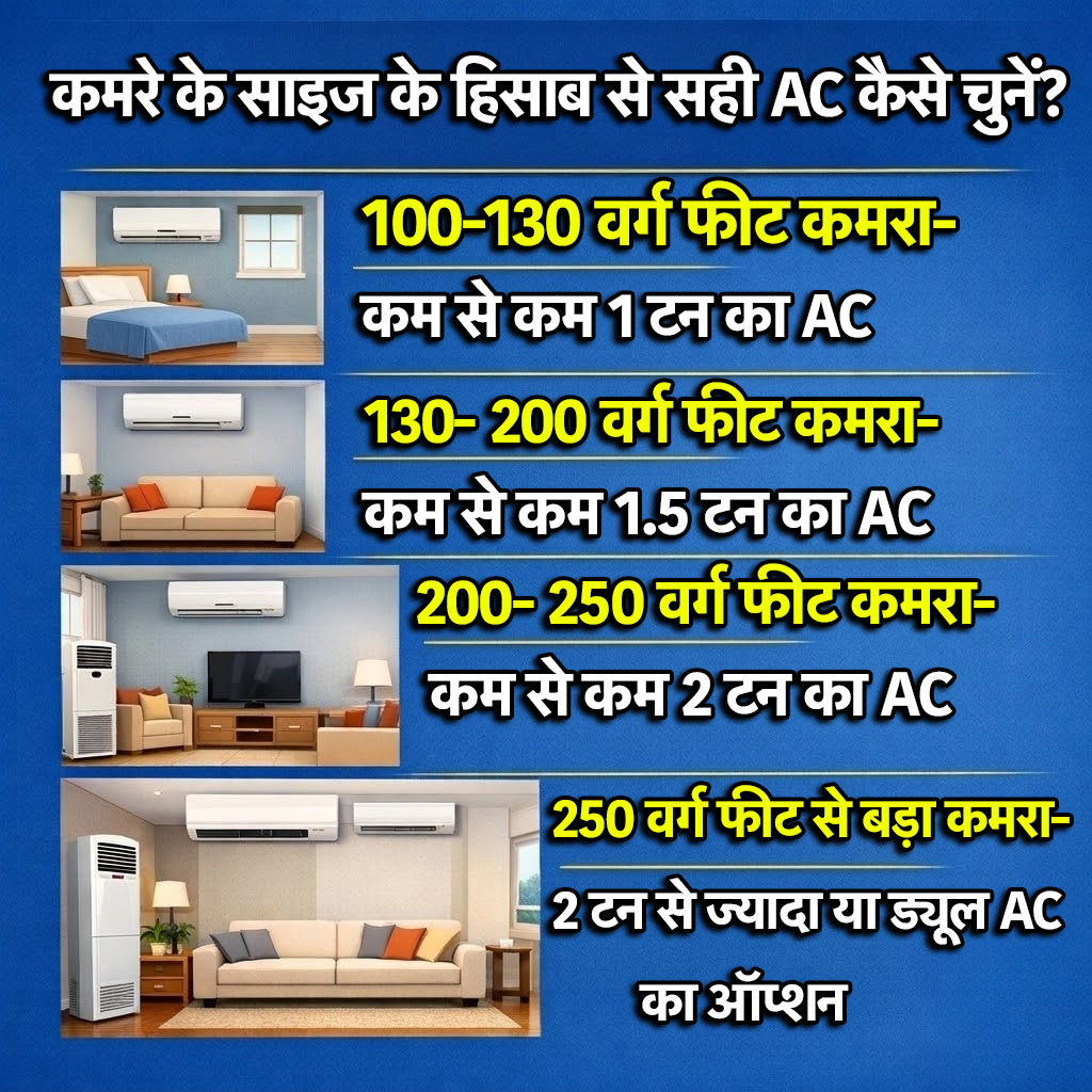 कितने टन का AC आपके रूम साइज के हिसाब से सही? खरीदने से पहले जान लें हर डिटेल