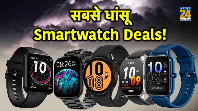 Smartwatch Deals: आज से अमेजन की ग्रेट इंडियन फेस्टिवल सेल शुरू हो गई है। इस सेल के दौरान स्मार्टफोन, टीवी, टैबलेट, इयरफोन और कई इलेक्ट्रॉनिक डिवाइस पर भारी छूट मिल रही है। सेल में कीमत और एक्सचेंज ऑफर पर छूट के अलावा, अमेजन एसबीआई डेबिट और क्रेडिट कार्ड का यूज करने पर एक्स्ट्रा 10% का डिस्काउंट दे रहा है। वहीं अगर आप भी इन दिनों एक नई स्मार्ट वॉच लेने का प्लान कर रहे हैं तो ये बेस्ट टाइम है, क्योंकि Samsung और OnePlus जैसी कई बड़ी कंपनियां इस सेल में सस्ते दामों पर स्मार्टवॉच खरीदने का मौका दे रही हैं। चलिए कुछ बेस्ट डील्स पर एक नजर डालते हैं।