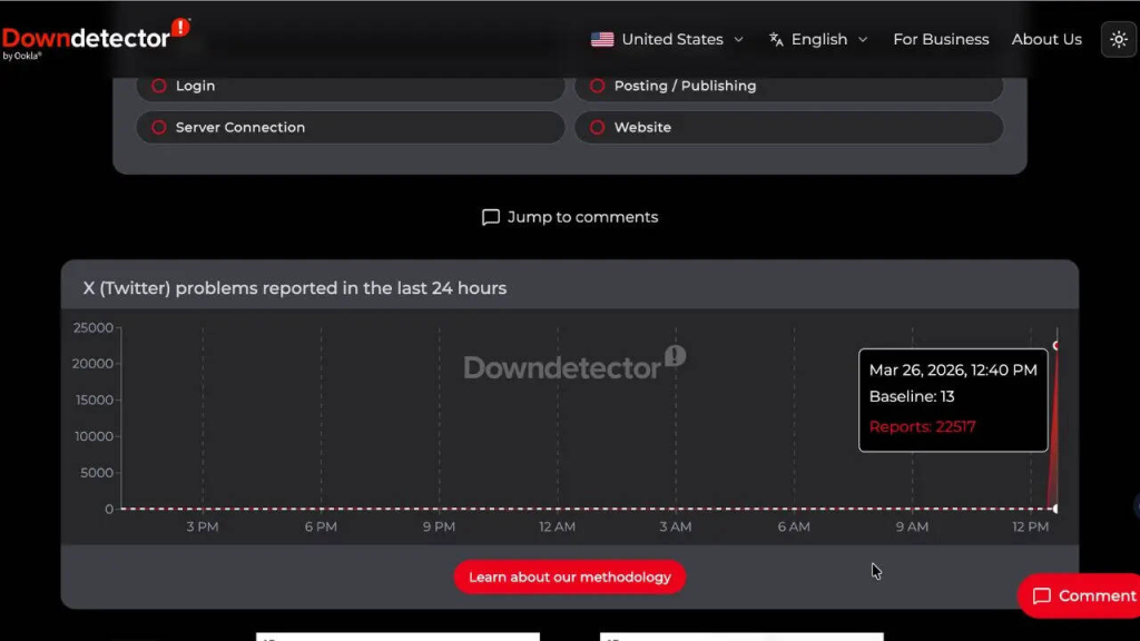 Downdetector.com рдХреЗ рдЕрдиреБрд╕рд╛рд░, рд╕рд┐рд░реНрдл рдЕрдореЗрд░рд┐рдХрд╛ рдореЗрдВ рд╣реА рдХрд░реАрдм 26,084 рдпреВрдЬрд░реНрд╕ рдиреЗ X рдХреЛ рд▓реЗрдХрд░ рд╕рдорд╕реНрдпрд╛ рдХреА рд░рд┐рдкреЛрд░реНрдЯ рджреА рд╣реИ. рдЗрдирдореЗрдВ рд╕реЗ рд▓рдЧрднрдЧ 50% рдпреВрдЬрд░реНрд╕ рдХреЛ рдЕрдкрдиреА рдлреАрдб рдпрд╛ рдЯрд╛рдЗрдорд▓рд╛рдЗрди рдореЗрдВ рджрд┐рдХреНрдХрдд рдЖ рд░рд╣реА рд╣реИ, 41% рд▓реЛрдЧреЛрдВ рдХреЛ рдРрдк рдЗрд╕реНрддреЗрдорд╛рд▓ рдХрд░рдиреЗ рдореЗрдВ рдкрд░реЗрд╢рд╛рдиреА рд╣реЛ рд░рд╣реА рд╣реИ, рдЬрдмрдХрд┐ рдХрд░реАрдм 6% рдпреВрдЬрд░реНрд╕ рд╡реЗрдмрд╕рд╛рдЗрдЯ рдПрдХреНрд╕реЗрд╕ рдирд╣реАрдВ рдХрд░ рдкрд╛ рд░рд╣реЗ рд╣реИрдВ.