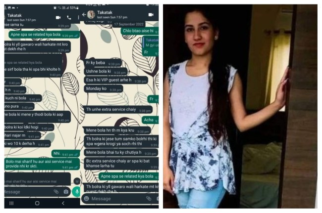 दरअसल, सोशल मीडिया पर एक व्हाट्सप चैट वायरल हो रही है। इसे अंकिता की चैट बताते हुए यह दावा किया जा रहा है कि अंकिता को गलत काम करने के लिए दबाव बनाया जा रहा था। आरोप है कि यह कहा जा रहा था कि गेस्ट को एक्स्ट्रा सर्विस दो और 10 हजार रुपये मिलेंगे। वॉट्सएप चैट में वंतरा रिजॉर्ट में स्पा ट्रीटमेंट देने के नाम पर एक्स्ट्रा सर्विस देने की बात की जा रही है।