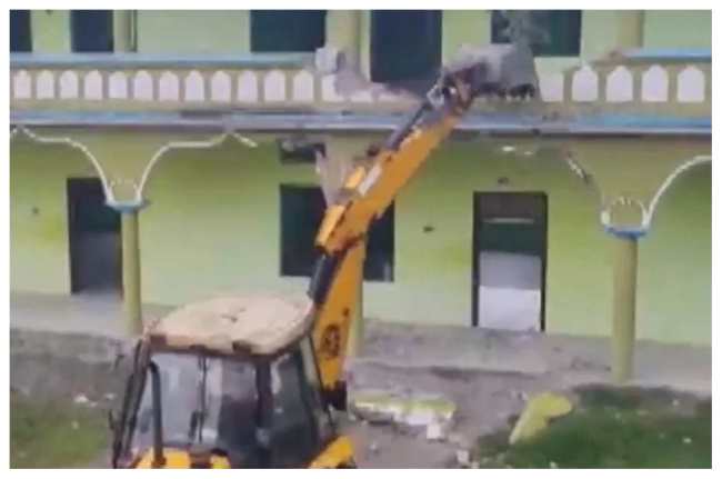 #WATCH | Assam: Markazul Ma-Arif Quariayana Madrasa, located at Kabaitary Part-IV village in Bongaigaon district, being demolished