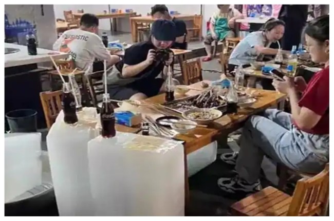 रेस्टोरेंट में बर्फ की सिल्लियां