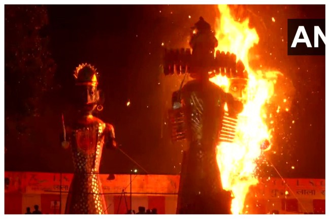 Dussehra 2022: देशभर में दशहरा पर्व धूमधाम से मनाया जा रहा है। कहीं दहन किए जा रहे रावण्ड के पुतले की ऊंचाई लोगों के लिए आकर्षण का केंद्र है तो कहीं हवा में चलता पुष्पक विमान लोगों को खूब लुभाया। देर शाम अलग-अलग राज्यों में रावण का पुतला दहन हुआ। पुतला दहन से पहले श्रीराम व रावण के बीच प्रतिकात्मक युद्ध भी हुआ। पुतला दहन के दौरान हर तरफ जय श्री राम और पवनपुत्र हनुनाम की जय और सियापति रामचंद्र की जय के उद्दघोष किया था।