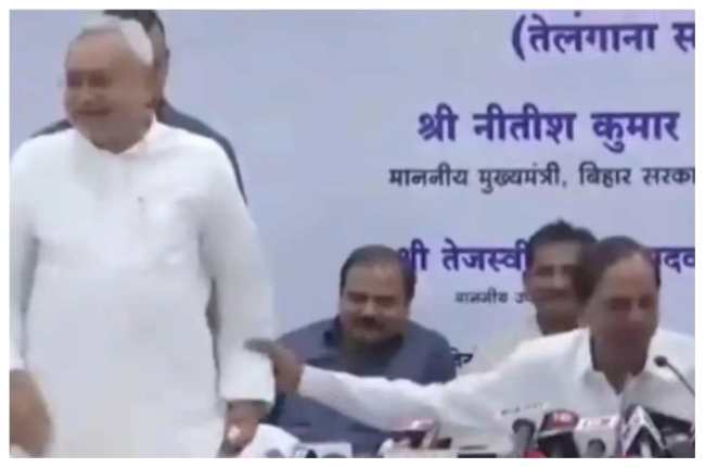рдиреАрддреАрд╢ рдХреБрдорд╛рд░ рдФрд░ рдЪрдВрджреНрд░рд╢реЗрдЦрд░ рд░рд╛рд╡ рдкрддреНрд░рдХрд╛рд░реЛрдВ рдХреЗ рд╕рд╡рд╛рд▓реЛрдВ рдХрд╛ рдЬрд╡рд╛рдм рджреЗ рд░рд╣реЗ рдереЗред рдЬрдм рд╕реАрдПрдо рдХреЗрд╕реАрдЖрд░ рд╕реЗ рд╕рд╡рд╛рд▓ рдкреВрдЫрд╛ рдХрд┐ рдХреНрдпрд╛ 2024 рдореЗрдВ рд╡рд┐рдкрдХреНрд╖ рдХрд╛ рдиреЗрддреГрддреНрд╡ рдиреАрддреАрд╢ рдХреБрдорд╛рд░ рдХрд░реЗрдВрдЧреЗ? рдХреНрдпрд╛ рдиреАрддреАрд╢ рдХреБрдорд╛рд░ рдкреАрдПрдо рдкрдж рдХреЗ рдЙрдореНрдореАрджрд╡рд╛рд░ рд╣реЛрдВрдЧреЗ? рд╕рд╡рд╛рд▓ рд╕реБрдирддреЗ рд╣реА рд╕реАрдПрдо рдиреАрддреАрд╢ рдЕрд╕рд╣рдЬ рд╣реЛ рдЧрдП рдФрд░ рд╕реАрдЯ рд╕реЗ рдЙрда рдЦрдбрд╝реЗ рд╣реБрдПред рдЗрд╕рд╕реЗ рдХреБрдЫ рджреЗрд░ рддрдХ рд╕рднреА рд╣реИрд░рд╛рди рд░рд╣ рдЧрдПред рдХреЗрд╕реАрдЖрд░ рдмреИрдардиреЗ рдХреЗ рд▓рд┐рдП рдмреЛрд▓рддреЗ рд░рд╣реЗ рдФрд░ рдиреАрддреАрд╢ рдХреБрдорд╛рд░ рдереЗ рдХрд┐ рдмреИрдардиреЗ рдХреЗ рд▓рд┐рдП рддреИрдпрд╛рд░ рдирд╣реАрдВ рд╣реЛ рд░рд╣реЗ рдереЗред рдЗрд╕ рджреМрд░рд╛рди рдХреЗрд╕реАрдЖрд░ рдХрднреА рдиреАрддреАрд╢ рдХреБрдорд╛рд░ рдХрд╛ рд╣рд╛рде, рддреЛ рдХрднреА рдЙрдирдХрд╛ рдХреБрд░реНрддрд╛ рдкрдХрдбрд╝ рдХрд░ рдЦреАрдВрдЪ рдХрд░ рдЙрдиреНрд╣реЗрдВ рдмрд┐рдард╛рдиреЗ рдХреА рдХреЛрд╢рд┐рд╢ рдХрд░рддреЗ рд░рд╣реЗ, рд▓реЗрдХрд┐рди рдиреАрддреАрд╢ рдХреБрдорд╛рд░ рдмреИрдардиреЗ рдХреЛ рддреИрдпрд╛рд░ рдирд╣реАрдВ рд╣реБрдПред рдХрд╣рдиреЗ рд▓рдЧреЗ 50 рдорд┐рдирдЯ рд╣реЛ рдЧрдПред рд╣рд╛рд▓рд╛рдВрдХрд┐, рдмрд╣реБрдд рдЖрдЧреНрд░рд╣ рдХреЗ рдмрд╛рдж рдиреАрддреАрд╢ рдХреБрдорд╛рд░ рдмреИрда рдЧрдПред