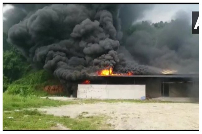 Meghalaya | A fire broke out at a rubber factory in Ri Bhoi district, earlier today. Fire tenders were rushed to the spot pic.twitter.com/QQTb5RnqVD