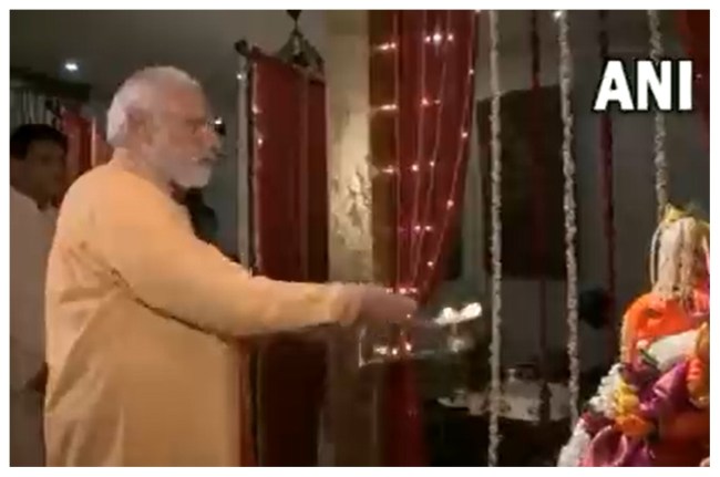 PM Modi performs 'aarti' at Piyush Goyal's residence on Ganesh Chaturthi