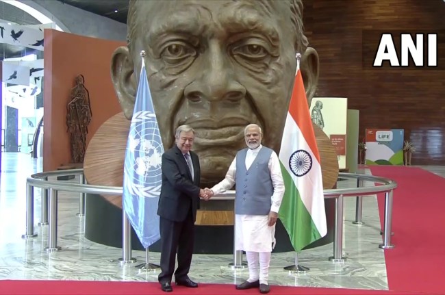 नई दिल्ली: प्रधानमंत्री नरेन्द्र मोदी दो दिवसीय दौरे को लेकर गुजरात में हैं। पीएम मोदी ने गुरुवार को गुजरात के केवड़िया में स्टैच्यू ऑफ यूनिटी परिसर में संयुक्त राष्ट्र के महासचिव एंटोनियो गुटेरेस से मुलाकात की। दोनों के बीच वार्ता हुई। गुजरात दौरे के पहले दिन यानी बुधवार को पीएम मोदी ने गांधीनगर में आयोजित डिफेंस एक्सपो का उद्घाटन किया था।