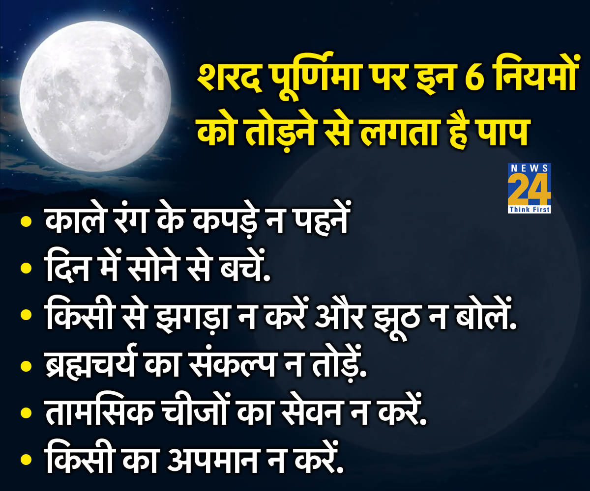 आज शरद पूर्णिमा पर दोपहर 12 बजकर 23 मिनट से लेकर देर रात 10 बजकर 53 मिनट तक भद्रा काल रहेगा. शास्त्रों में बताया गया है कि भद्रा काल अशुभ होता है, जिस दौरान शुभ कार्य नहीं करने चाहिए.