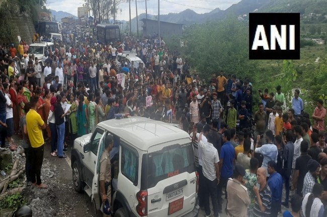 Srinagar, Uttarakhand | A huge crowd of protestors demand justice, blocking the Badrinath-Rishikesh highway in front of the mortuary near the base hospital where #AnkitaBhandari's body was taken to; administration attempts to clear the jam. pic.twitter.com/0hSgmR6qlA
