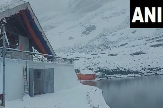 #WATCH | Uttarakhand: Hemkund Sahib in Chamoli district enshrouded in a white cover of snow as it receives fresh snowfall pic.twitter.com/RPpDN1uC40