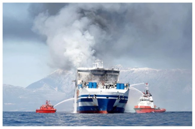 जानकारी के मुताबिक अचानक फैरी के डेक में आग लग गई थी। जिससे वहां अफरा-तफरी का माहौल बन गया।