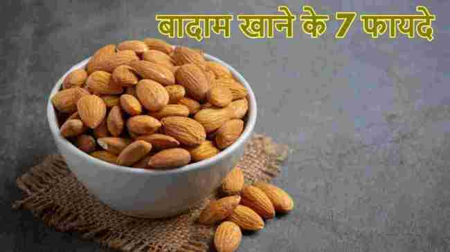 Almond Benefits: बादाम हेल्दी फैट्स, फाइबर, प्रोटीन, विटामिन और खनिजों, जैसे मैग्नीशियम और कैल्शियम से भरपूर होते हैं। इन्हें कच्चा या भिगोकर खाया जा सकता है। बादाम एक सुपरफूड है। इसका इस्तेमाल लोग मीठे व्यंजनों में भी करते हैं। रोजाना बादाम खाने से पाचन की समस्या, पिंपल्स और एलर्जी जैसी समस्याएं दूर होती हैं। बादाम में ओमेगा-3 होता है, जो गुड कोलेस्ट्रॉल के लिए जरूरी है। अगर हम लगातार 7 दिनों तक रोज बादाम खाते हैं तो हमें ये 7 अद्भुत लाभ मिलेंगे।