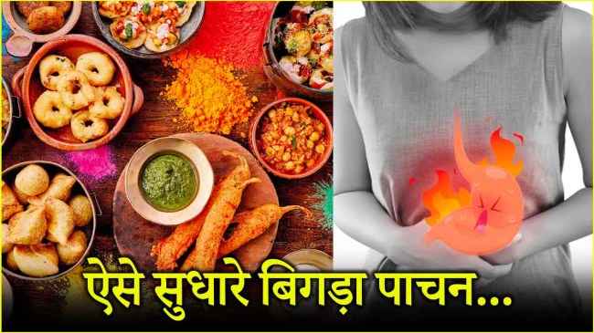 Holi 2025: किसी भी त्योहार का असली मजा मिठाइयों और पकवानों से ही शुरू होता है। इस साल होली 14 मार्च को मनाई जाती है। इस पर्व पर गुजियां, नमकीन, पापड़, पकौड़ों से लेकर कई घरों में नॉनवेज भी बनाया जाता है। इन सभी चीजों को खाने से पाचन बिगड़ सकता है। दरअसल, ये सभी व्यंजन तले-भुने और ज्यादा मसालों से बनाएं जाते हैं। लोग त्योहार के मौके पर इन्हें चाव से खा तो लेते हैं लेकिन फिर उनका पेट बिल्कुल असहज हो जाता है। चलिए जानते हैं इसका कारण।