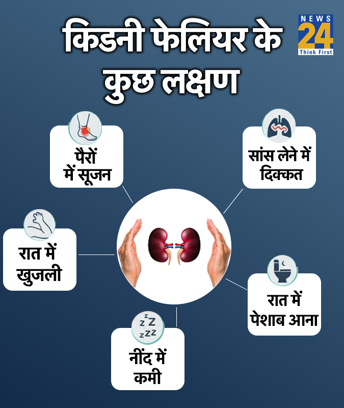 Kidney Failure Symptoms: рдХрд┐рдбрдиреА рд╣рдорд╛рд░реЗ рд╢рд░реАрд░ рдХреА рдПрдХ рдРрд╕реА рдорд╢реАрди рд╣реИ рдЬрд┐рд╕рдХрд╛ рдХрд╛рдо рдмреЙрдбреА рдХреА рд╕рдлрд╛рдИ рдХрд░рдирд╛ рдФрд░ рдЦреВрди рдХреЛ рдбрд┐рдЯреЙрдХреНрд╕ рдХрд░рдирд╛ рд╣реЛрддрд╛ рд╣реИ. рдордЧрд░ рдкрд┐рдЫрд▓реЗ рдХреБрдЫ рд╕рд╛рд▓реЛрдВ рд╕реЗ рдХрд┐рдбрдиреА рдХреА рдмреАрдорд╛рд░рд┐рдпреЛрдВ рдХреЗ рдорд╛рдорд▓реЗ рдХрд╛рдлреА рдЬреНрдпрд╛рджрд╛ рдмрдврд╝ рдЧрдП рд╣реИрдВ. рдЗрдирдореЗрдВ рдХрд┐рдбрдиреА рдлреЗрд▓рд┐рдпрд░ рднреА рд╢рд╛рдорд┐рд▓ рд╣реИ, рдЬреЛ рдХрд┐рдбрдиреА рдХреЗ рд░реЛрдЧреЛрдВ рдореЗрдВ рд╕рдмрд╕реЗ рдЬреНрдпрд╛рджрд╛ рдЦрддрд░рдирд╛рдХ рдорд╛рдирд╛ рдЬрд╛рддрд╛ рд╣реИ. рдХрд┐рдбрдиреА рдлреЗрд▓рд┐рдпрд░ рдХреЗ рдХреБрдЫ рд▓рдХреНрд╖рдг рд╣рдореЗрдВ рд░рд╛рдд рдХреЗ рд╕рдордп рднреА рджрд┐рдЦрд╛рдИ рджреЗрддреЗ рд╣реИрдВ рдЬреИрд╕реЗ рдХрд┐ рд╕реНрдХрд┐рди рдореЗрдВ рдЦреБрдЬрд▓реА рд╣реЛрдирд╛. рдХрд╛рд░реНрдбрд┐рдпреЛрд▓реЙрдЬрд┐рд╕реНрдЯ рдбреЙрдХреНрдЯрд░ рдмрд┐рдорд▓ рдЫрд╛рдЬрдбрд╝ рдмрддрд╛рддреЗ рд╣реИрдВ рдХрд┐ рдХрд┐рдбрдиреА рдлреЗрд▓ рдХреЗ рдХрд┐рди рд╕рдВрдХреЗрддреЛрдВ рдХреЛ рд╣рдореЗрдВ рддреБрд░рдВрдд рд╕рдордЭ рд▓реЗрдирд╛ рдЪрд╛рд╣рд┐рдП.