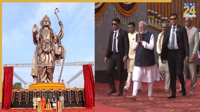 PM Modi in Goa: рд░рд╛рдо рдЬрдиреНрдорднреВрдорд┐ рдЕрдпреЛрдзреНрдпрд╛ рдореЗрдВ 25 рдирд╡рдВрдмрд░ рдХреЛ рд░рд╛рдорд▓рд▓рд╛ рдордВрджрд┐рд░ рдХреЗ рд╢рд┐рдЦрд░ рдкрд░ рдкреНрд░рдзрд╛рдирдордВрддреНрд░реА рдирд░реЗрдВрджреНрд░ рдореЛрджреА рдиреЗ рдзреНрд╡рдЬрд╛рд░реЛрд╣рдг рдХрд┐рдпрд╛. рдЕрдм рдкреАрдПрдо рдореЛрджреА рдиреЗ рдЕрдкрдиреЗ рдЧреЛрд╡рд╛ рдореЗрдВ рднреА рдХреБрдЫ рдРрд╕рд╛ рдХрд┐рдпрд╛ рдЬрд┐рд╕рдХреЗ рдмрд╛рдж рд╡рд╣рд╛рдВ рдХреА рдЧрд▓рд┐рдпрд╛рдВ рд░рд╛рдо рдирд╛рдо рдХреЗ рдЬрдпрдХрд╛рд░ рд╕реЗ рдЧреВрдВрдЬ рдЙрдареАрдВ. рдкреАрдПрдо рдирд░реЗрдВрджреНрд░ рдореЛрджреА рдиреЗ рдЧреЛрд╡рд╛ рдХреЗ рджрдХреНрд╖рд┐рдг рдЧреЛрд╡рд╛ рдЬрд┐рд▓реЗ рдореЗрдВ рд╕реНрдерд┐рдд рд╢реНрд░реА рд╕рдВрд╕реНрдерд╛рди рдЧреЛрдХрд░реНрдг рдкрд╛рд░рддрд╛рдЧрд▓реА рдЬреАрд╡рддреНрддрдо рдорда рдореЗрдВ рднрдЧрд╡рд╛рди рд╢реНрд░реАрд░рд╛рдо рдХреА 77 рдлреАрдЯ рдКрдВрдЪреА рдХрд╛рдВрд╕реНрдп рдХреА рднрд╡реНрдп рдкреНрд░рддрд┐рдорд╛ рдХрд╛ рдЕрдирд╛рд╡рд░рдг рдХрд┐рдпрд╛. рдпрд╣ рдкреНрд░рддрд┐рдорд╛ рд╡рд┐рд╢реНрд╡ рдХреА рд╕рдмрд╕реЗ рд▓рдВрдмреА рднрдЧрд╡рд╛рди рд░рд╛рдо рдХреА рдореВрд░реНрддрд┐ рдорд╛рдиреА рдЬрд╛ рд░рд╣реА рд╣реИ, рдЬрд┐рд╕реЗ рдкреНрд░рд╕рд┐рджреНрдз рдореВрд░реНрддрд┐рдХрд╛рд░ рд░рд╛рдо рд╕реБрддрд╛рд░ рдиреЗ рдбрд┐рдЬрд╛рдЗрди рдХрд┐рдпрд╛ рд╣реИ. рд░рд╛рдо рд╕реБрддрд╛рд░ рдиреЗ рд╣реА рдЧреБрдЬрд░рд╛рдд рдХреЗ рд╕реНрдЯреИрдЪреНрдпреВ рдСрдл рдпреВрдирд┐рдЯреА рдХреЛ рдбрд┐рдЬрд╛рдЗрди рдХрд┐рдпрд╛ рдерд╛.