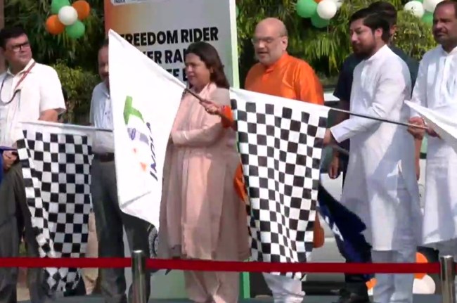 नई दिल्ली: केंद्रीय गृह मंत्री अमित शाह ने शुक्रवार को राष्ट्रीय राजधानी स्थित मेजर ध्यानचंद नेशनल स्टेडियम से ‘फ्रीडम राइडर बाइकर रैली’ को हरी झंडी दिखाई। इस दौरान केंद्रीय मंत्री मीनाक्षी लेखी और निसिथ प्रमाणिक भी वहां मौजूद थे।