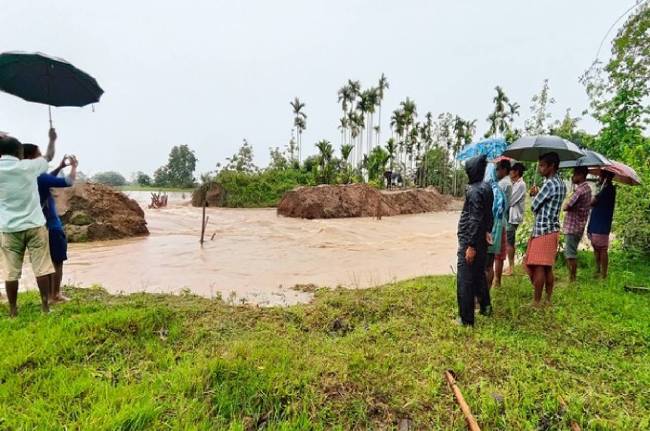 बाढ़ के पानी से सड़कें, बांध, पुल टूटे