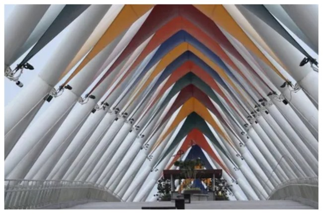 рдЖрдХрд╖рд░реНрд╖рдХ рдбрд┐рдЬрд╛рдЗрди рдФрд░ рдПрд▓рдИрдбреА рд▓рд╛рдЗрдЯрд┐рдВрдЧ рд╡рд╛рд▓рд╛ рдпрд╣ рдкреБрд▓ рдХрд░реАрдм 300 рдореАрдЯрд░ рд▓рдВрдмрд╛ рдФрд░ рдмреАрдЪ рдореЗрдВ 14 рдореАрдЯрд░ рдЪреМрдбрд╝рд╛ рд╣реИред рдЗрд╕ рдкреБрд▓ рд╕реЗ рдкреИрджрд▓ рдпрд╛рддреНрд░рд┐рдпреЛрдВ рдХреЗ рдЕрд▓рд╛рд╡рд╛ рд╕рд╛рдЗрдХрд┐рд▓ рд╕рд╡рд╛рд░ рднреА рдЧреБрдЬрд░ рд╕рдХреЗрдВрдЧреЗред 300 рдореАрдЯрд░ рдХрд╛ рдпрд╣ рдкреБрд▓ рд╕рд╛рдмрд░рдорддреА рд░рд┐рд╡рд░рдлреНрд░рдВрдЯ рдХреЗ рдкреВрд░реНрд╡ рдФрд░ рдкрд╢реНрдЪрд┐рдо рдХреА рдУрд░ рдХреЛ рдЬреЛрдбрд╝рддрд╛ рд╣реИредрдЕрдЯрд▓ рдмреНрд░рд┐рдЬ рдХрд╛ рдбрд┐рдЬрд╛рдЗрди рдЦреБрдж рдореЗрдВ рд╣реА рдЖрдХрд░реНрд╖рдг рдХрд╛ рдХреЗрдВрджреНрд░ рд╣реИред рдЕрдЯрд▓ рдмреНрд░рд┐рдЬ рдХреА рдЫрдд рд░рдВрдЧреАрди рдХрдкрдбрд╝реЗ рд╕реЗ рдмрдиреА рд╣реИ рдФрд░ рд░реЗрд▓рд┐рдВрдЧ рдХрд╛рдВрдЪ рдФрд░ рд╕реНрдЯреЗрдирд▓реЗрд╕ рд╕реНрдЯреАрд▓ рд╕реЗ рдмрдирд╛рдИ рдЧрдИ рд╣реИред рдЗрд╕ рдкреБрд▓ рдХреЗ рдирд┐рд░реНрдорд╛рдг рдореЗрдВ 2,600 рдореАрдЯреНрд░рд┐рдХ рдЯрди рд╕реНрдЯреАрд▓ рдкрд╛рдЗрдк рдХрд╛ рдЗрд╕реНрддреЗрдорд╛рд▓ рдХрд░ рдмрдирд╛рдпрд╛ рдЧрдпрд╛ рд╣реИред рдЗрд╕ рдкреБрд▓ рдХрд╛ рдбрд┐рдЬрд╛рдЗрди рдЕрдкрдиреЗ рдЖрдк рдореЗрдВ рдмрд╣реБрдд рд╣реА рдЕрд▓рдЧ рд╣реИред рдпрд╣рд╛рдВ рдЖрдиреЗ рд╡рд╛рд▓реЗ рд▓реЛрдЧ рджреЛ рд░рд╛рд╕реНрддреЛрдВ рдХреЗ рдорд╛рдзреНрдпрдо рд╕реЗ рд░рд┐рд╡рд░рдлреНрд░рдВрдЯ рддрдХ рдкрд╣реБрдВрдЪ рд╕рдХрддреЗ рд╣реИрдВред