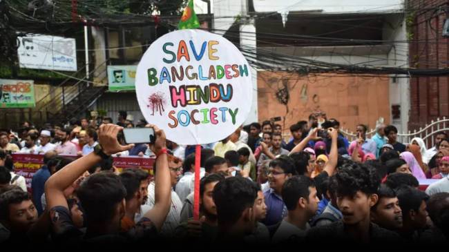 बांग्लादेश में हो रहे हिंसक प्रदर्शनों के खिलाफ हिंदू समेत तमाम अल्पसंख्यकों ने भी आवाज बुलंद कर ली है। हिंदुओं ने साथ मिलकर रैली का आयोजन किया है। उनका कहना है कि ये हमारी मिट्टी है। बांग्लादेश हमारी मातृभूमि है और हम इसे कभी नहीं छोड़ेंगे। इन रैलियों में बांग्लादेशी हिंदू समाज की रक्षा करो जैसे नारे भी सुनाई दे रहे हैं। साथ ही कई लोग जय श्री राम के नारे लगाते भी दिखाई दे रहे हैं। बांग्लादेशी हिंदू मंदिर तोड़े जाने और लड़कियों को निशाना बनाए जाने से काफी नाराज हैं।