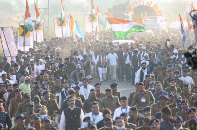 नई दिल्ली: राहुल गांधी के नेतृत्व में कांग्रेस की भारती जोड़ो यात्रा सुर्खियों में है। यह यात्रा 7 सितंबर, 2022 को कन्याकुमारी से शुरू हुई। यह 3,570 किमी लंबी, 150-दिवसीय ‘नॉन-स्टॉप’ पदयात्रा होगी जो देश भर के 12 राज्यों और दो केंद्र शासित प्रदेश को कवर करेगी। कांग्रेस सांसद राहुल गांधी की भारत जोड़ो यात्रा बुधवार को महाराष्ट्र से मध्यप्रदेश पहुंची। यात्रा का पहला पड़ाव बुरहानपुर जिले का बोदरली गांव रहा। भारत जोड़ो यात्रा से अभी तक कई जानी-मानी हस्तियां जुड़ चुकी हैं। इस यात्रा के कई अलग-अलग रंग देखने को मिले हैं। राहुल गांधी ने कभी लगाई रेस तो कभी किया डांडिया डांस करते हुए दिखे।