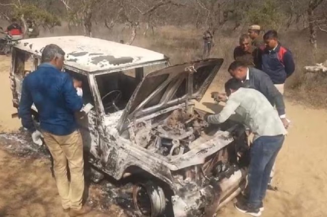 जली हुई गाड़ी में दो लोगों के कंकाल मिला