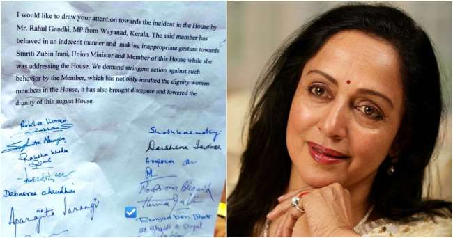 शोभा करंदलाजे ने अध्यक्ष के कक्ष में 21 महिला भाजपा सदस्यों द्वारा हस्ताक्षरित पत्र सौंपा, जिसमें राहुल गांधी के खिलाफ कड़ी कार्रवाई की मांग की गई। हेमा मालिनी स्पीकर से मिलने गए प्रतिनिधिमंडल में शामिल थीं।