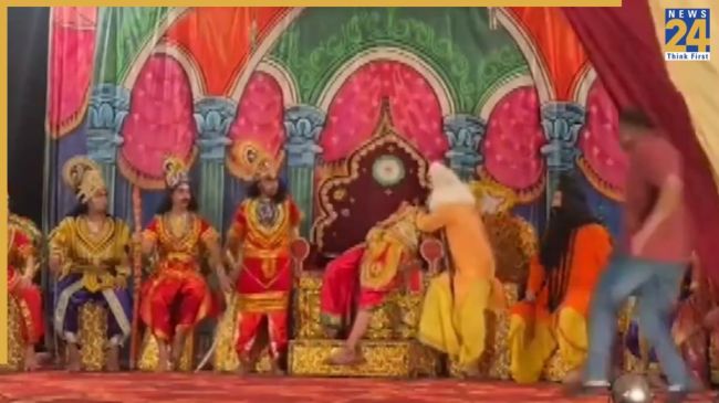 पूरी घटना हिमाचल प्रदेश के चंबा के चौगान मैदान में हो रही ऐतिहासिक श्री रामलीला के दौरान की है. मंच पर रामलीला चल रही है. लोकप्रिय कलाकार अमरेश महाराज राजा दशरथ की भूमिका में मंच पर थे. इसके साथ ही अन्य कई कलाकार भी मंच पर मौजूद थे..