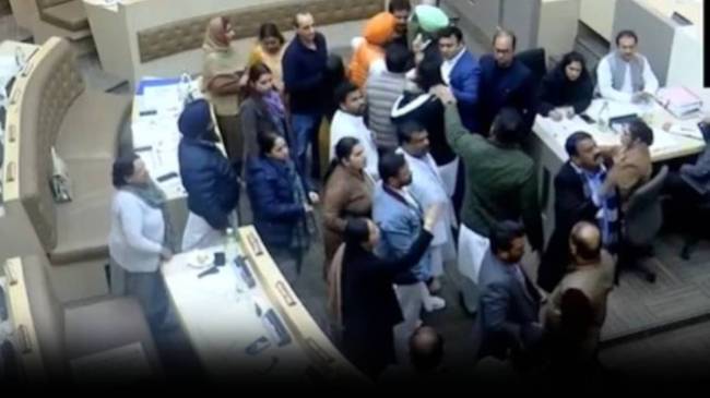 #WATCH | Scuffle erupted between Congress and BJP councillors over the subject of Dr BR Ambedkar during the general house meeting of Chandigarh Municipal Corporation today