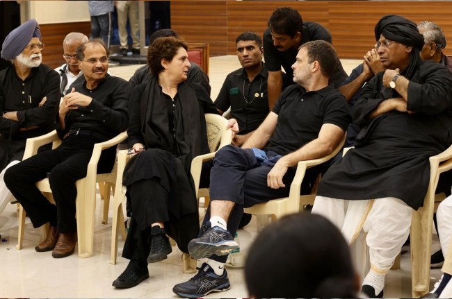 - рд╕реЛрдирд┐рдпрд╛ рдФрд░ рд░рд╛рд╣реБрд▓ рдЧрд╛рдВрдзреА рдХрд╛рд▓реЗ рдХрдкрдбрд╝реЗ рдкрд╣рдирдХрд░ рдкрд╣реБрдВрдЪреЗ рд╕рдВрд╕рджред