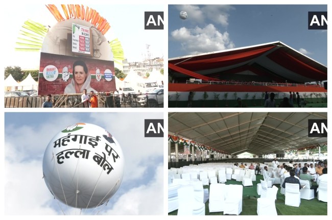 Preparations underway at Ramlila Maidan in Delhi for the Congress party’s 'Mehangai Par Halla Bol' rally to be held tomorrow, September 4th pic.twitter.com/YzJbmAEaiW