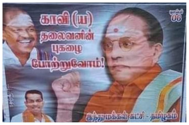 कुंबकोणम: तमिलनाडू में संविधान निर्माता बीआर अंबेडकर के पोस्टर पर विवाद खड़ा हो गया है। दरअसल, बाबा साहेब की पुण्यतिथि पर यहां कुंबकोणम व आसपास उनके पोस्टर लगाए गए। लेकिन इन पोस्टरों में बाबा साहेब को भगवा कपड़े में दिखाया गया है। इतना ही नहीं उनके माथे पर टीका भी लगा है।