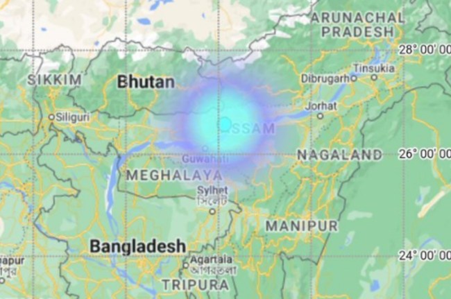 An earthquake of magnitude 3.5 occurred 62km northeast of Guwahati, at around 12:27pm, today. The depth of the earthquake was 10 km below the ground: National Center for Seismology pic.twitter.com/B9r1c5n3YW