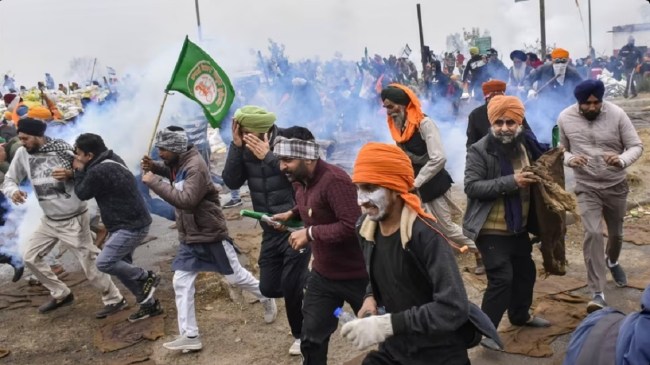 VIDEO | Farmers’ ‘Delhi Chalo’ march: Tear gas shells fired at Shambhu border. More details are awaited. pic.twitter.com/4TSRuqmZvT