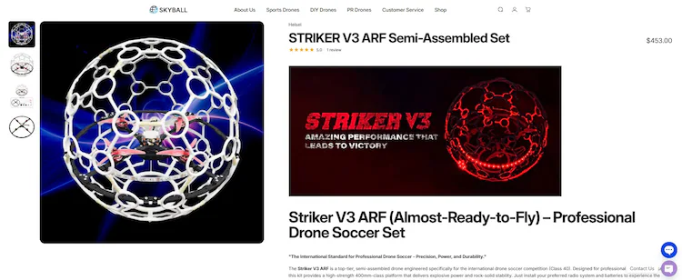 рдЗрдВрдбрд┐рдпрд╛ рдЯреБрдбреЗ рдиреЗ рдкрд╛рдпрд╛ рдХрд┐ рдпрд╣ рдкреНрд░реЛрдбрдХреНрдЯ skyballdrone.com рдкрд░ рдорд┐рд▓рдиреЗ рд╡рд╛рд▓реЗ рд╕реНрдЯреНрд░рд╛рдЗрдХрд░ V3 ARF рдкреНрд░реЛрдлреЗрд╢рдирд▓ рдбреНрд░реЛрди рд╕реЙрдХрд░ рд╕реЗрдЯ рдЬреИрд╕рд╛ рд╣реА рдерд╛. рдЗрд╕рдХреА рдХреАрдордд рд▓рдЧрднрдЧ $453 (Rs 40,800) рд╣реИ.