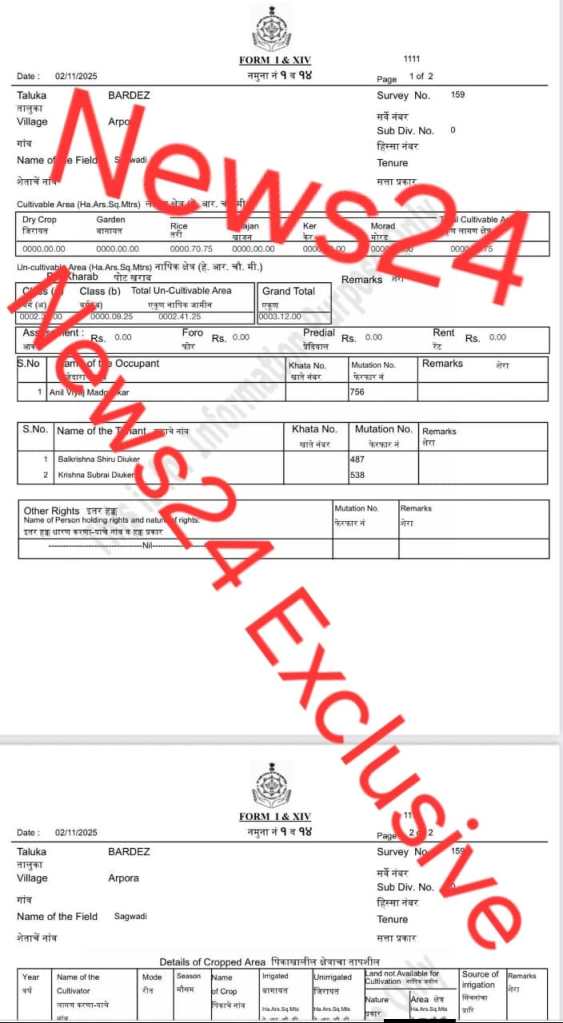 Goa nightclub fire case: गोवा के जिस अरपोरा नाइट क्लब में हुए अग्निकांड में 25 लोगों की मौत हुई, उसकी जमीन पर सनसनीखेज खुलासा हुआ है. वह क्लब खेती वाली जमीन पर बना हुआ है. न्यूज 24 के पास जमीन के असली दस्तावेजों की कॉपी है. जमीन के दस्तावेजों में uthra brothers का नाम नहीं है. यह जमीन बाल कृष्ण देव कर और कृष्णा देव कर के नाम पर है और सुरेंद्र खोसला की जमीन है जिन्होंने luthara brothers को क्लब बनाने के लिए दी. सिविल कोर्ट में दोनों देवकर भाई केस लड़ रहे हैं. उनका दावा है कि उनकी जमीन पर अवैध रूप से कब्जा कर नाइट क्लब बनाया गया. साल्ट लैंड होने के कारण इस जमीन पर निर्माण संभव ही नहीं था.