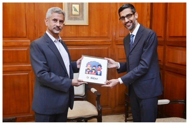 मुलाकात के बाद सुंदर पिचाई ने कहा गूगल 100 से अधिक भारतीय भाषाओं के लिए एक इंटरनेट सर्च मॉडल विकसित कर रही है। महिलाओं के नेतृत्व वाली स्टार्टअप कंपनियों को 7.5 करोड़ डॉलर की मदद दी जाएगी। विदेश मंत्री एस जयशंकर ने कहा, “आज दोपहर गूगल और अल्फाबेट के सीईओ सुंदर पिचाई से मिलकर अच्छा लगा। भारत के डिजिटल परिवर्तन और वैश्विक रणनीतिक विकास पर चर्चा की।