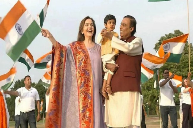 Independence Day 2022: रिलायंस इंडस्ट्रीज के चेयरमैन मुकेश अंबानी और उनकी पत्नी नीता अंबानी ने अपने पोते पृथ्वी अंबानी के साथ भारत का 76वां स्वतंत्रता दिवस मनाया। एएनआई द्वारा साझा किए गए 18 सेकंड के एक वीडियो में मुकेश अंबानी ने पोते को गोद में ले रखा है, जबकि नीता अंबानी तिरंगा लहरा रही हैं।