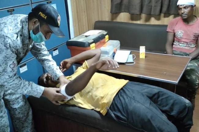 During routine patrolling in Eastern maritime region, PMSA ship rescued 6 #Indian fishermen who were drowning close to Int'l Maritime Boundary Line b/w IND & PAK. Nakwa reported that their boat sank as a result of the accident & they drifted towards Pakistani waters. pic.twitter.com/XoMke464US