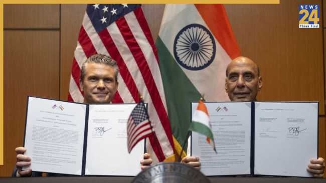 पिछले कई महीनों से भारत और अमेरिका के बीच संबंध बेहतर नहीं चल रहे हैं। अमेरिका के राष्ट्रपति डोनाल्ड ट्रंप के टैरिफ का फैसला और भारत पाक संघर्ष रुकवाना का बार बार दावा करना बड़ी वजह बन रहे थे। इसी बीच दोनों देशों के लिए अच्छी खबर आई है। भारत अमेरिका के बीच बड़ी डिफेंस डील हुई है। इसके तहत 10 सालों के लिए अमेरिका-भारत ने रक्षा ढांचे पर हस्ताक्षर हुए हैं। अमेरिकी युद्ध मंत्री पीट हेगसेथ ने एक्स प्लेटफॉर्म पर इसकी जानकारी शेयर की है।